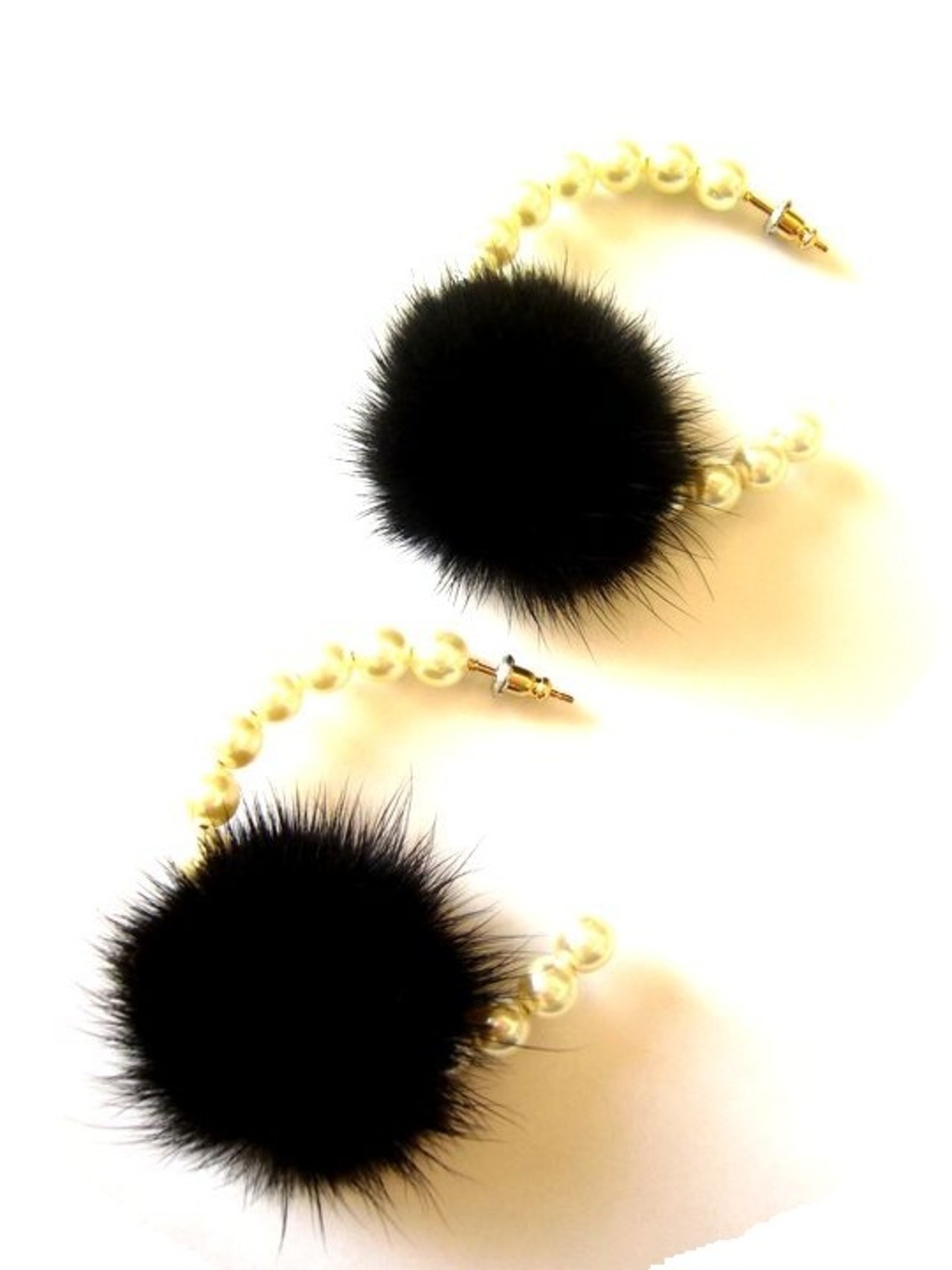 耳元にフワフワのボンボンがボリューム&かわいい!!ファーはブラックで個性的に。