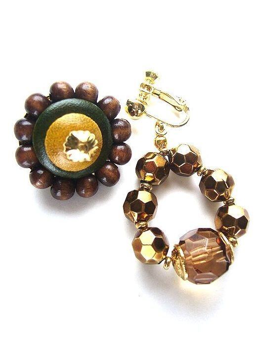 左右でデザイン違いのアシメトリータイプのイヤリング/ピアスです。