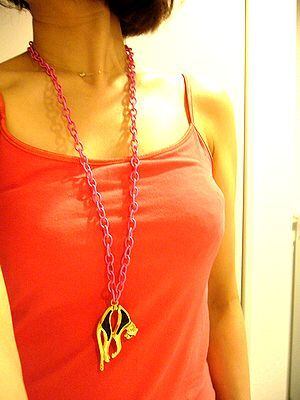 ピンクのチェーンに繋がれたビンテージモチーフの