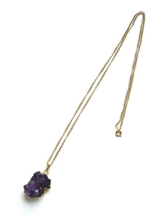 自然のカタチそのままが美しい、80年代のアメシストのトップのネックレスです。長めのチェーンで大人っぽく。チェーンももちろんビンテージです。