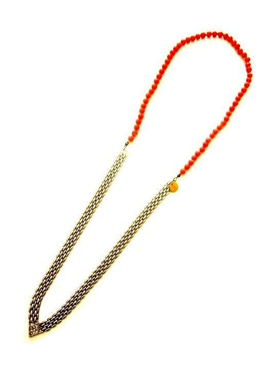 ローズ・ピンクのビーズ部分はすべてビンテージ・グラスのオール・ノット(玉結び留め)です。
